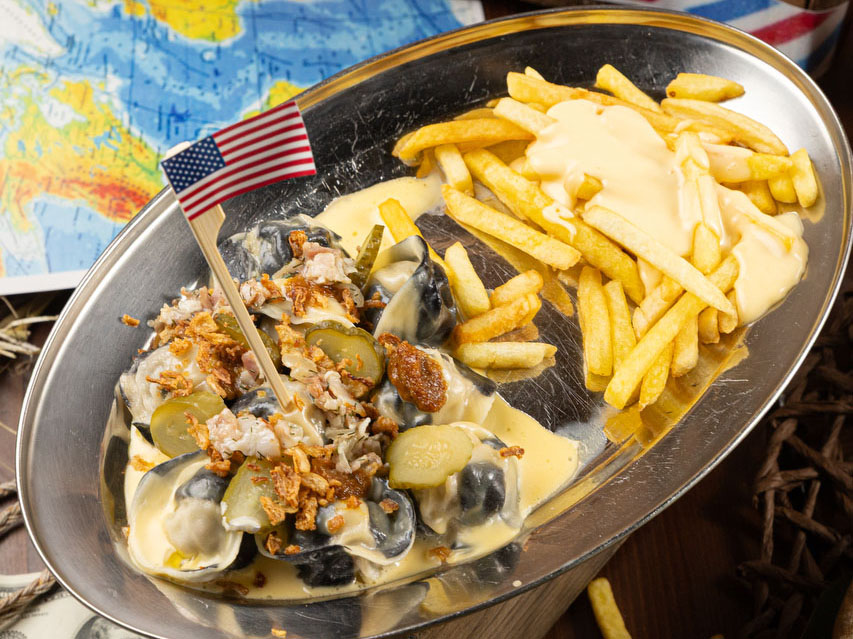 Душа американского бургера в нежном тесте. Внутри — сочная говядина, как в лучших закусочных америки. Сверху — огурчик с жареным луком. И все это в соусе Чеддер